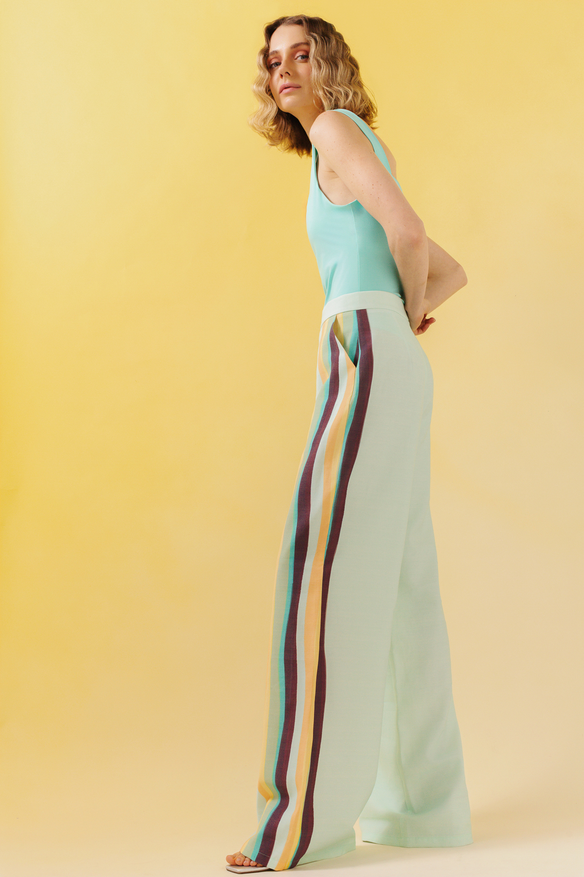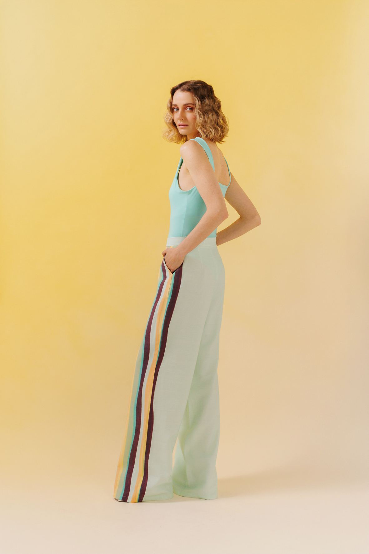 Nuestros pantalones botanical están inspirados en los árboles de eucalipto. Son de tiro alto y pierna recta, diseñados para alargar la silueta mientras aportan una sofisticación sin esfuerzo. Bolsillos laterales invisibles y una cremallera discreta aportan estructura limpia y funcionalidad.
