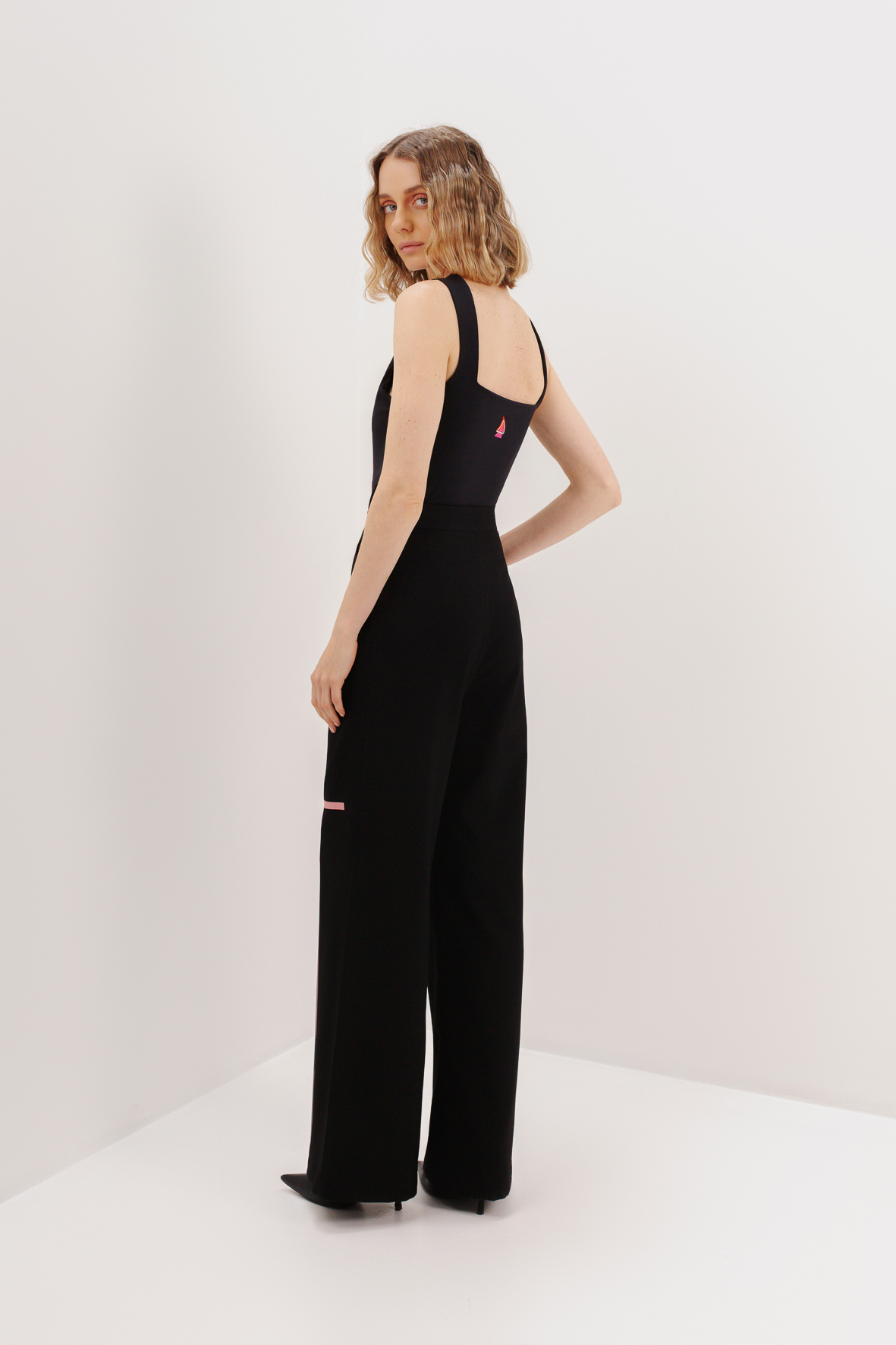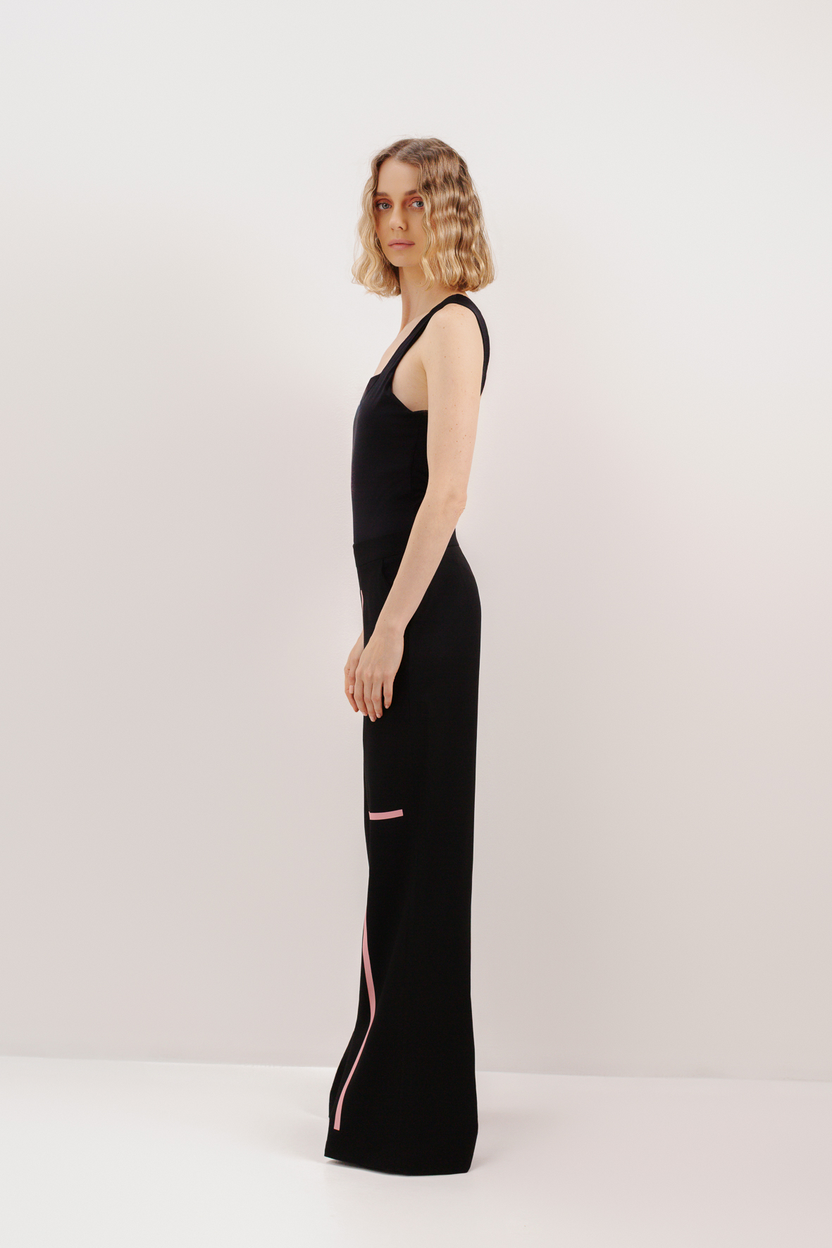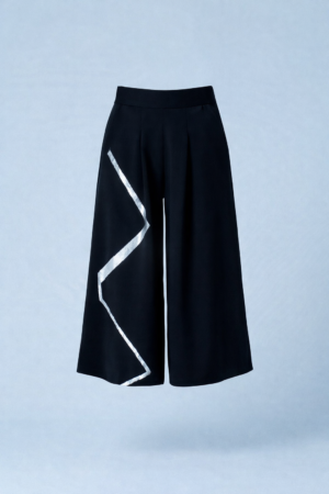 High-waisted trousers designed to elongate the silhouette with effortless precision. A handcrafted print along the leg creates a subtle statement while maintaining a refined, minimalist aesthetic.